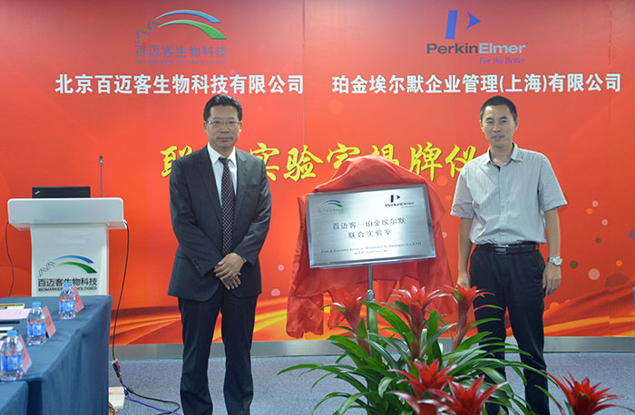 8月14日,北京百邁客生物科技有限公司與珀金埃爾默企業(yè)管理(上海)有限公司舉行了聯(lián)合實(shí)驗室揭牌儀式。北京百邁客生物科技有限公司創(chuàng )始人、董事長(cháng)兼 CEO鄭洪坤先生,珀金埃爾默亞太區生命科學(xué)副總裁兼總經(jīng)理、大中華區總裁顧憲進(jìn)先生,偕同多位雙方代表參加了揭牌儀式。