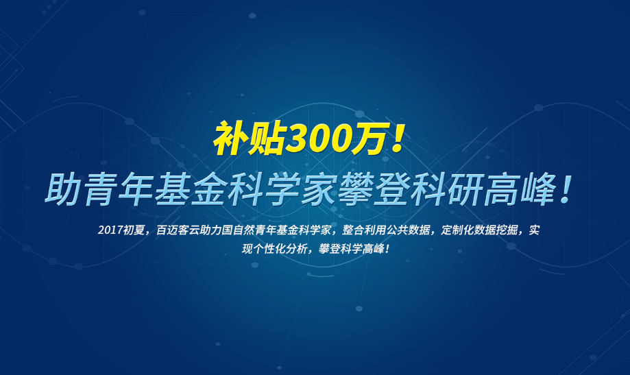 2017初夏,百邁客云助力國自然青年基金科學(xué)家,整合利用公共數據,定制化數據挖掘,實(shí)現個(gè)性化分析,攀登科學(xué)高峰!