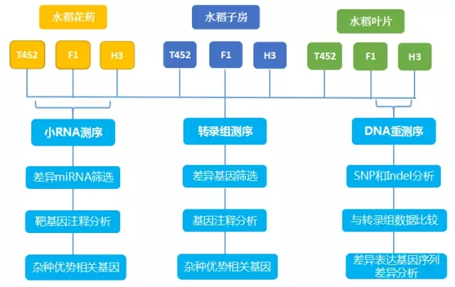小RNA測序:取T452,H3及雜交F1代的減數分裂階段的花藥進(jìn)行小RNA測序,無(wú)生物學(xué)重復。