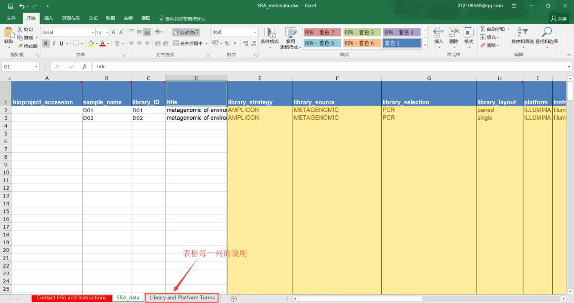 第七步:第六步表格上傳完成后,需要接著(zhù)上傳Metadata表格,主要填寫(xiě)樣品建庫測序的信息和需要上傳的文件名,填寫(xiě)完成后也是導入到文本文件中然后上傳;