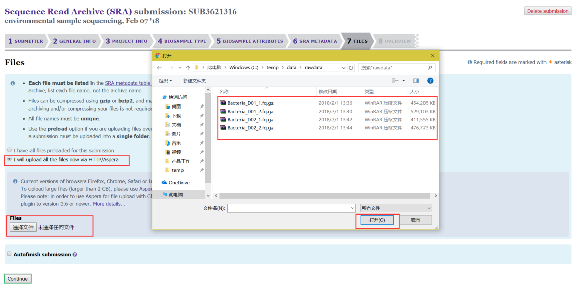 第八步:重點(diǎn)來(lái)了,這一步是將我們的數據傳到NCBI的服務(wù)器上,需要下載安裝一個(gè)軟件Aspera(http://downloads.asperasoft.com/connect2/,windows下也可以安裝)。軟件安裝完成后有兩種上傳方法:(1)可以直接上傳,適用于數據量小、樣本量小的項目;