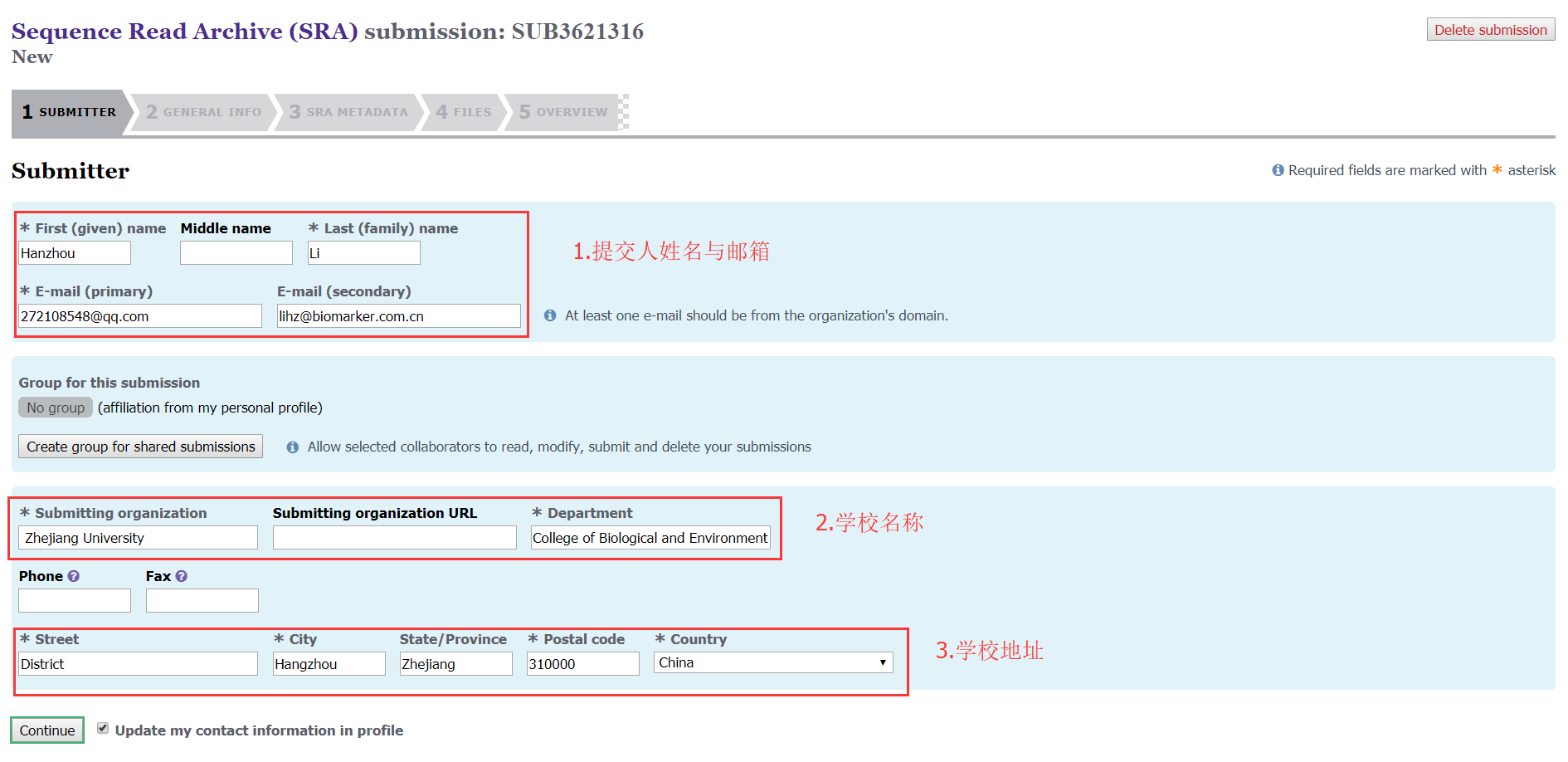 第二步:填寫(xiě)提交人的個(gè)人信息和單位信息;