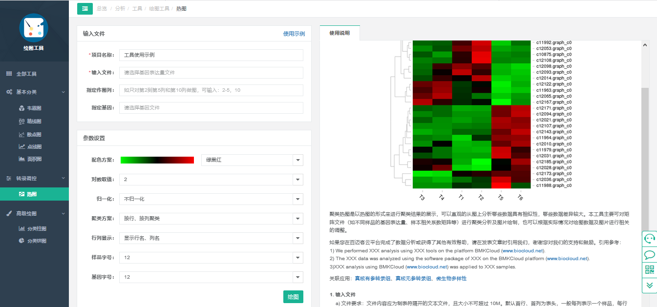 是由北京百邁客生物科技有限公司開(kāi)發(fā),集生物信息分析軟件、數據庫以及云計算為一體的生物大數據分析平臺。功能強大,操作簡(jiǎn)單的聚類(lèi)熱圖就介紹到這里了,后期云平臺會(huì )為大家準備更多實(shí)用小工具的操作指引,如果您在操作過(guò)程中遇到任何問(wèn)題都可以聯(lián)系咱們的云客服,歡迎點(diǎn)擊屏幕右下方客服圖像進(jìn)入咨詢(xún)環(huán)節。