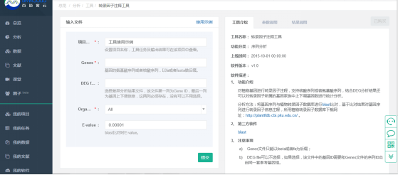 在對話(huà)框中輸入“轉錄因子注釋”,Enter鍵進(jìn)入轉錄因子注釋工具界面