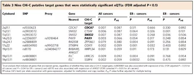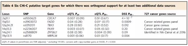 捕獲Hi-C測序鑒定33個(gè)乳腺癌風(fēng)險基因座潛在的110個(gè)靶基因
