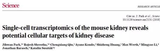 參考文獻:Jihwan Park, Rojesh Shrestha, Chengxiang Qiu, et al. Single-cell transcriptomics of the mouse kidney reveals potential cellular targets of kidney disease. SCIENCE. April 05, 2018.