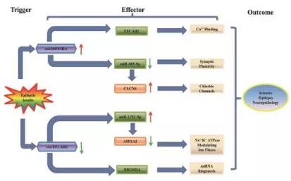 最近的基因組學(xué)研究揭示了許多與各種疾病的基因調控相關(guān)的非編碼RNA (ncRNAs)。人類(lèi)癲癇中非編碼RNA的表達也發(fā)生了改變,可以作為一種新的、非侵入性的生物標志物來(lái)改善目前的癲癇診斷。環(huán)狀RNA (circRNAs)是一種獨特的非編碼環(huán)狀RNA,circRNA與microRNAs (miRNAs)相互作用,并作為miRNA海綿,通過(guò)circRNA-miRNA-mRNA網(wǎng)絡(luò )在神經(jīng)系統疾病中調節基因表達。研究表明環(huán)狀RNA在神經(jīng)元功能中發(fā)揮重要作用,尤其是在突觸中。組織學(xué)研究結果證實(shí),邊緣系統的突觸重組似乎能逐漸增強皮質(zhì)興奮性,并可能導致癲癇發(fā)作。然而,circRNAs在癲癇中的作用仍是未知的。