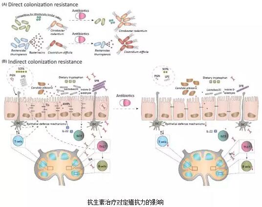 抗生素治療帶來(lái)不良影響的原因多種多樣。首先,它可能破壞微生物之間以及微生物與宿主之間的相互作用,而這些互作是維持人體生態(tài)體系內穩態(tài)的關(guān)鍵。其次,它還可能促進(jìn)抗生素耐藥菌的增長(cháng),及導致其它敏感型細菌獲得抗生素耐藥性。這些機制可能導致微生物菌群組成的不可逆改變。最后,因抗生素使用過(guò)度減少了共生細菌對免疫系統的刺激,可能會(huì )破壞免疫系統的適當“education”,從而產(chǎn)生對自身或無(wú)害抗原的免疫反應,即發(fā)生自身免疫反應或過(guò)敏反應。