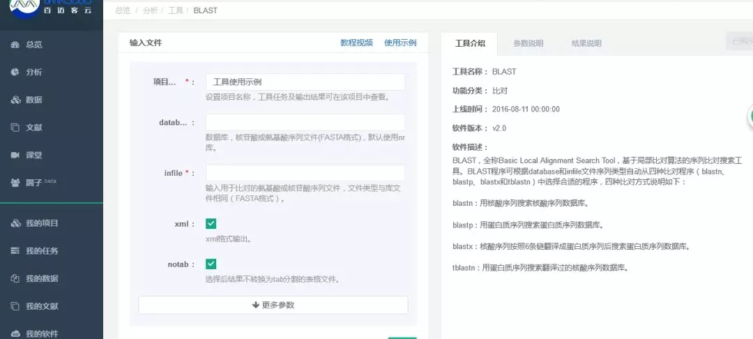 對,就是百邁客云(BMKCloud)小工具—BLAST!