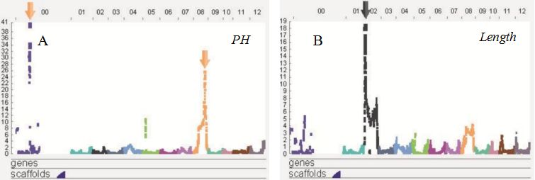 圖2? ? ? A)果實(shí)酸度和? ? ?B)果實(shí)長(cháng)度定位結果展示