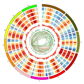 ????????通過(guò)Circos圖可以直觀(guān)比較基因組和三代測序結果中基因密度、轉錄本密度,以及l(fā)ncRNA和融合轉錄本在染色體分布。