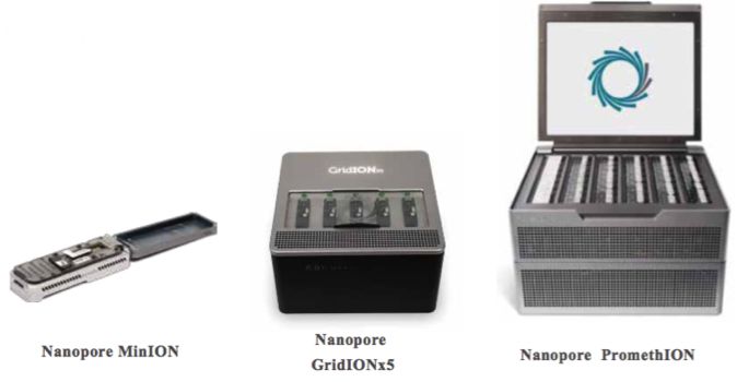 Oxford公司的Nanopore測序技術(shù)借助單個(gè)分子通過(guò)納米孔時(shí)引起孔兩側電位差來(lái)實(shí)現信號檢測,納米孔的直徑僅允許單個(gè)核苷酸聚合物通過(guò),而ATCG四種堿基的帶電性質(zhì)不同,因此通過(guò)電信號差異特征即可檢測出通過(guò)納米孔的堿基類(lèi)型,從而實(shí)現測序,目前主要測序平臺為Nanopore MinION、Nanopore GridIONx5、 Nanopore PromethION。