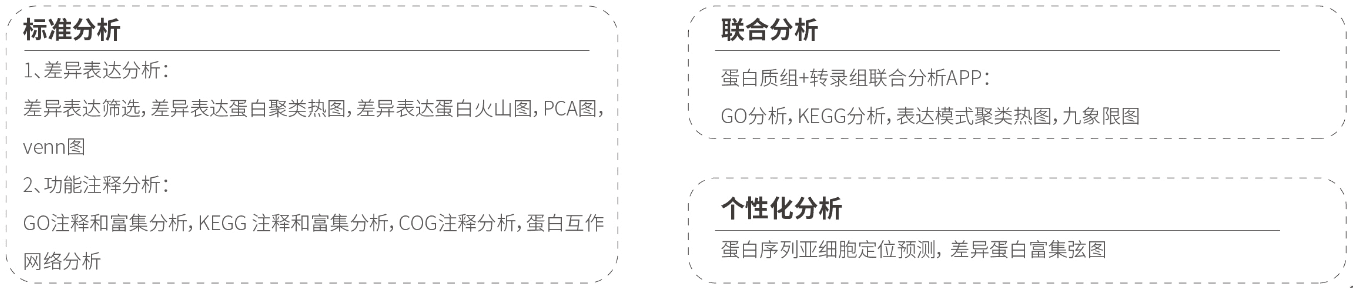 蛋白組云分析App兼具標準分析、聯(lián)合分析、個(gè)性化分析功能。