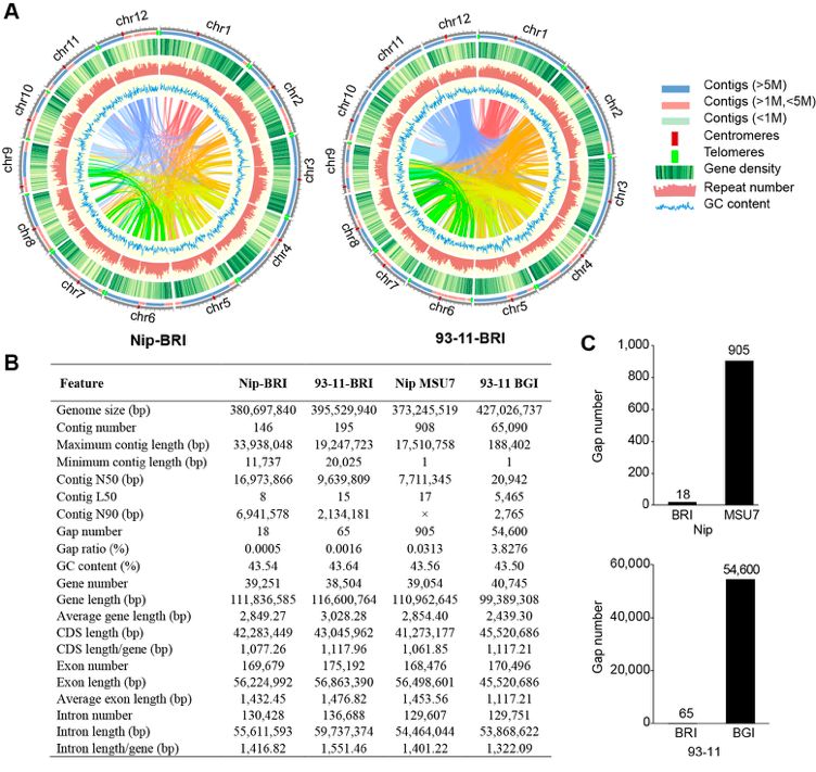 圖1.?水稻Nip和93-11基因組更新