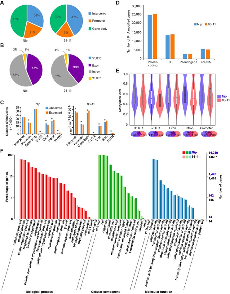 圖3.Nip和93-11的6mA甲基化基因