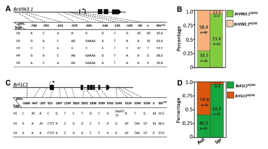 圖3?BrVIN3.1和BrFLC1的單倍型