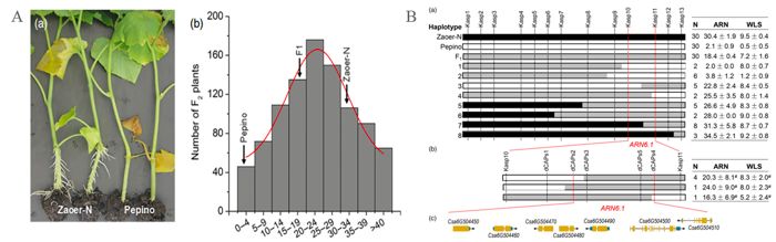 圖3 SLAF-BSA分析與黃瓜ARN6.1位點(diǎn)精細定位