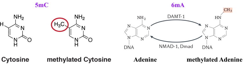 DNA甲基化是表觀(guān)遺傳領(lǐng)域中非常重要的一個(gè)研究方向,真核生物中最常見(jiàn)的DNA修飾是5mC(CG/CHG/CHH),而原核生物中6mA是最普遍的DNA修飾。然而,近幾年來(lái)的報道發(fā)現DNA 6mA修飾在真核生物基因組中廣泛存在。2018年7月和11月發(fā)表的文章都發(fā)現了人類(lèi)基因組中豐富的6mA修飾。值得關(guān)注的是,這兩篇人類(lèi)基因組中6mA的功能研究卻發(fā)現了兩種不同的聲音,其中Yan et al.?發(fā)現6mA水平在癌癥中有明顯下調,然而Jeremy N. Rich et al.卻暗示了膠質(zhì)瘤中甲基化水平是顯著(zhù)提升。因此,6mA在腫瘤甚至其他復雜疾病中的調控機制到底如何還需廣大研究者們的深入研究~