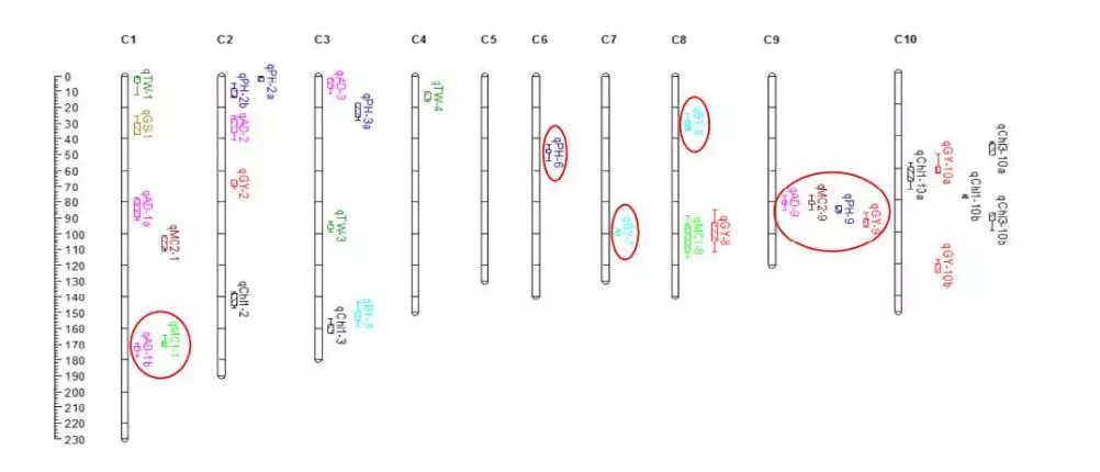 方法:Mapmaker/EXP 3.0和?IciMapping用于遺傳圖譜構建,WinQTLcart2.5用于QTL定位