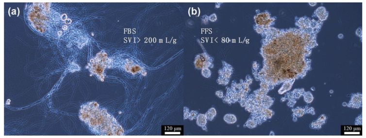 1. 活性污泥樣本:FBS和FFS分別來(lái)自?xún)蓚€(gè)處理生活污水的試驗規模動(dòng)態(tài)膜生物反應器,兩個(gè)生物膜反應器均在實(shí)驗室內運行,FBS中的絲狀菌通過(guò)倒置熒光顯微鏡來(lái)觀(guān)察。