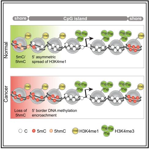 Skvortsova K, Masle-Farquhar E,?et al.DNA Hypermethylation Encroachment at CpG Island?Borders in Cancer Is Predisposed by H3K4?Monomethylation Patterns.Cancer Cell,2019.
