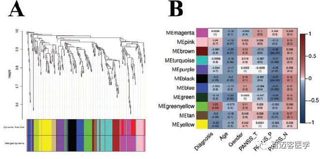上述pooled set(49個(gè)SCZ患者?vs?46個(gè)HC對照)進(jìn)行miRNA WGCNA分析,共計鑒定到11個(gè)共表達的模塊,其中3個(gè)與疾病狀態(tài)顯著(zhù)相關(guān)。
