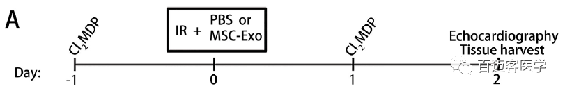 在心肌缺血/再灌注(I/R)之前和之后24小時(shí)施用巨噬細胞清除劑-二氯亞甲基二膦酸鹽(Cl2MDP)脂質(zhì)體,再灌注后0h立即遞送MSC-Exo或PBS在至心肌。檢測梗塞面積以及心臟和血清中的炎癥水平等;