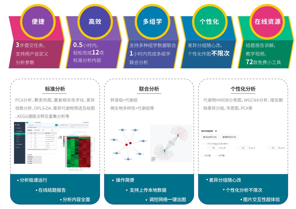 百邁客云提供專(zhuān)業(yè)的生信分析平臺(http://www.biocloud.net/),新上線(xiàn)的代謝組云APP兼具標準分析、聯(lián)合分析和個(gè)性化分析功能,同時(shí)海量在線(xiàn)資源以供學(xué)習和使用。