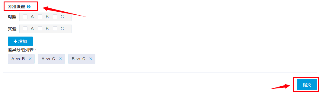 在進(jìn)行分組設置時(shí),我們可以自由添加分組,設置自己的組名,并在組名之后添加用于差異分析的樣品。