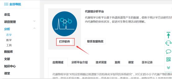 在農學(xué)分析各平臺右側選擇代謝組分析平臺,如下圖: