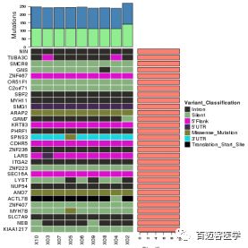 5)熱圖助力可視化腫瘤外顯子高頻突變基因的突變類(lèi)型分布展示