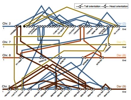染色體碎裂即為一個(gè)染色體在復制過(guò)程被打碎,然后這些碎片以另一種順序重組(其實(shí)小編的理解就是一堆結構變異集中發(fā)生了)。