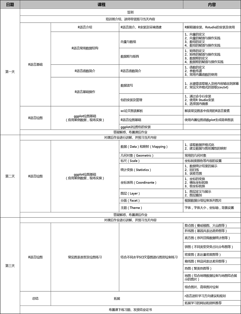 培訓預期:通過(guò)3天培訓,可以學(xué)會(huì )R語(yǔ)言基礎,可以繪制和修改sci常用圖形。