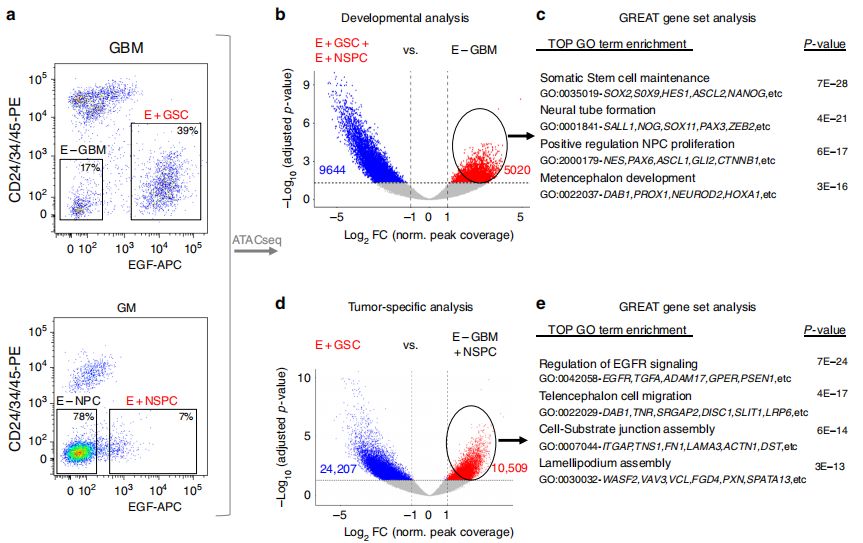 通過(guò)熒光激活細胞分選術(shù)(FACS)從GM和GBM組織中分離的細胞GSC(EGF+/-)、NSPC(EGF+/-),分別進(jìn)行ATAC-seq。