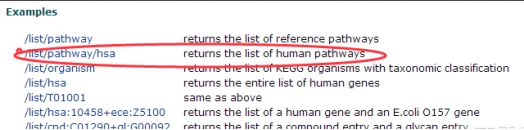 https://www.kegg.jp/kegg/rest/keggapi.html#list,點(diǎn)擊如圖所示鏈接得到KEGG所有人類(lèi)通路的列表,截至20190418,收錄了330條通路。