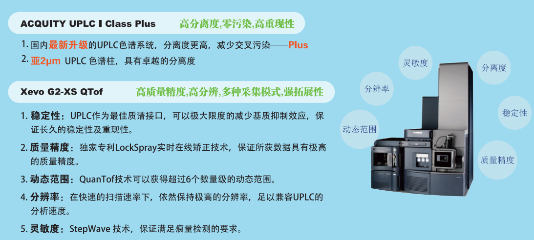 百邁客成功引進(jìn)Waters公司的Xevo G2-XS QTOF質(zhì)譜系統,并配備UPLC I Class Plus色譜儀,這套系統擁有成熟耐用的技術(shù)體系和關(guān)鍵技術(shù),整體在分離度和準確性上都有出色表現,并且得到廣大科研工作者的認可。百邁客依托于這套平臺,自主建立實(shí)驗體系,配合已經(jīng)開(kāi)發(fā)出的代謝組分析流程,帶動(dòng)著(zhù)代謝組學(xué)技術(shù)在儀器平臺和分析內容上逐步迭代更新。