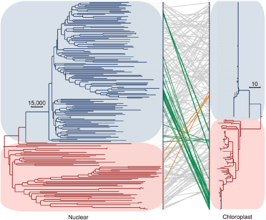 核基因組和細胞器基因組之間的不對稱(chēng)多樣化揭示了基因滲入