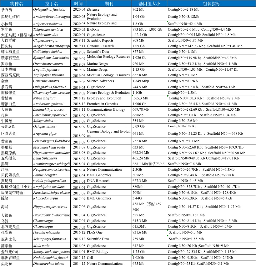 表2 近年已發(fā)表的魚(yú)類(lèi)基因組