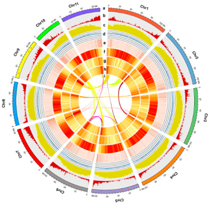 2018年5月8日,中國農業(yè)科學(xué)院棉花研究所所長(cháng)李付廣研究員、武漢大學(xué)朱玉賢院士、中國農業(yè)科學(xué)院棉花研究所杜雄明研究員、中國農業(yè)科學(xué)院農業(yè)基因組研究所所長(cháng)黃三文研究員、林濤博士與北京百邁客生物科技有限公司關(guān)于亞洲棉的合作成果發(fā)表在Nature Genetics上。利用三代PacBio測序+Hi-C技術(shù)完成了亞洲棉基因組的重新組裝,將基因組Contig N50從72 kb提升到1.1 Mb,并將91.98%的序列掛載至染色體水平上,為亞洲棉后續的群體遺傳學(xué)等相關(guān)研究奠定了基礎[5]。