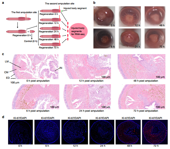 進(jìn)一步利用10xGenomics單細胞轉錄組測序深度解析蚯蚓再生機制,蚯蚓再生早期72小時(shí)后損傷愈合部位細胞的高比例組分是干細胞,且多能干細胞在蚯蚓再生早期過(guò)程中具有重要作用。此項研究提供了一些蚯蚓再生的候選分子細胞學(xué)機制。