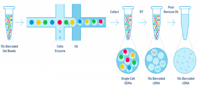 單細胞測序,簡(jiǎn)而言之,就是獲取單個(gè)細胞遺傳信息的測序技術(shù),其中10 X Genomics單細胞轉錄組測序平臺具有廣泛的應用。該技術(shù)利用微流控、油滴包裹和barcode標記等技術(shù)來(lái)實(shí)現高通量的細胞捕獲技術(shù),能夠一次性分離、并標記500–10000個(gè)單細胞,從而獲得每個(gè)細胞的3’端的轉錄組信息。主要用于細胞分型和標記因子的鑒定,從而實(shí)現對細胞群體的劃分與細胞群體間基因表達差異的檢測,此外該技術(shù)還可以預測細胞分化與研究發(fā)育軌跡,在當下疾病、免疫、腫瘤領(lǐng)域以及組織、器官、動(dòng)植物發(fā)育研究中發(fā)揮越來(lái)越重要的作用。