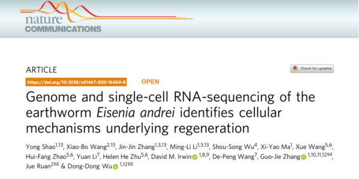 文章中利用了三代測序技術(shù)及Hi-C輔助基因組組裝技術(shù),獲得染色體級別的蚯蚓基因組,基因組組裝連續性一般,但結合基因組序列信息及單細胞轉錄組研究解析了土壤生態(tài)系統重要成員無(wú)脊椎動(dòng)物蚯蚓再生的分子細胞學(xué)機制,提出蚯蚓能夠作為研究再生生物學(xué)或者再生醫學(xué)的一個(gè)新的模型。