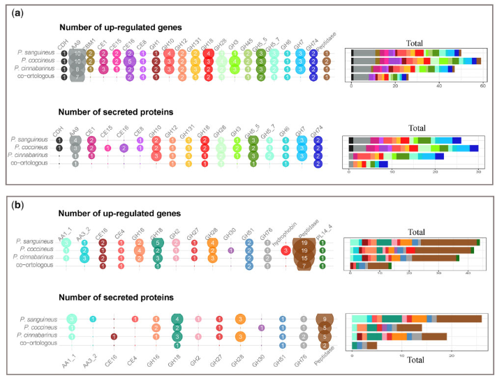 2、4種Pycnoporus真菌具有相似的碳水化合物活性酶家族 (CAZYme)