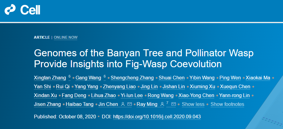 2020年10月8日,福建農林大學(xué)基因組與生物技術(shù)中心聯(lián)合中國科學(xué)院西雙版納熱帶植物園等多個(gè)單位共同合作的榕-蜂協(xié)同進(jìn)化研究成果以“Genomes of the banyan tree and pollinator wasp provide insights into fig-wasp coevolution”為題在國際期刊Cell上在線(xiàn)發(fā)表。文中利用北京百邁客生物科技有限公司的Hi-C建庫測序技術(shù),并結合明瑞光課題組獨立研發(fā)的ALLHiC算法成功的將小葉榕和對葉榕組裝至染色體水平,并對榕樹(shù)氣生根、性別決定基因、榕樹(shù)進(jìn)化以及榕蜂共生體系專(zhuān)性協(xié)同進(jìn)化等進(jìn)行研究。該研究為明瑞光教授團隊繼18、19年連續兩年論文刊登期刊Nature Genetics[1-2]后的又一次突破性成果!