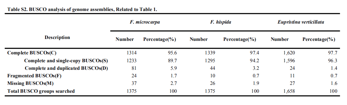 表1 細葉榕、對葉榕及榕小蜂基因組組裝及評估結果