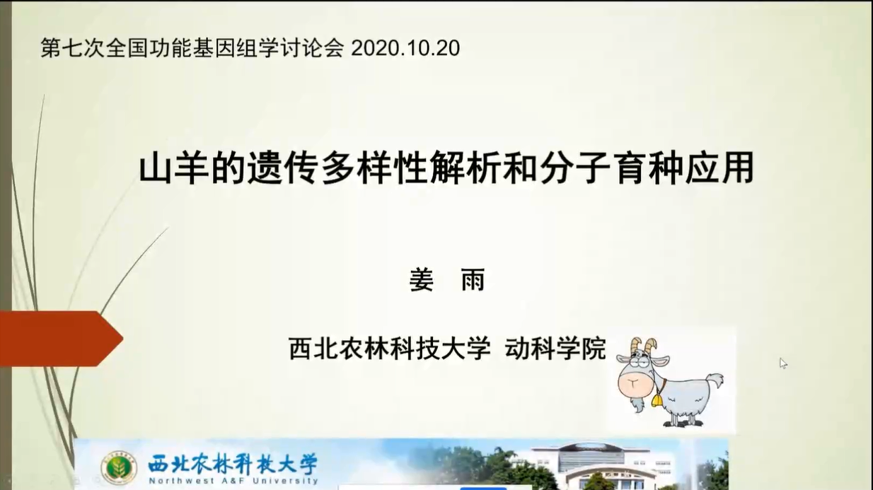 西北農林科技大學(xué)姜雨教授風(fēng)趣而系統的解析了世界山羊品種的遺傳來(lái)源,并在山羊上鑒定出關(guān)鍵抗病基因MUC6。展示了基于世界主要家畜的SNP和CNV等變異信息和頻率構建的家畜遺傳變異數據庫。最后表示其研究團隊構建了適用于中國綿羊和山羊的基因芯片,將為羊的基因組選擇育種服務(wù),而該芯片也將進(jìn)入分析應用階段。姜老師的研究結果引起了線(xiàn)上基因組學(xué)相關(guān)領(lǐng)域眾多學(xué)者的熱烈討論。