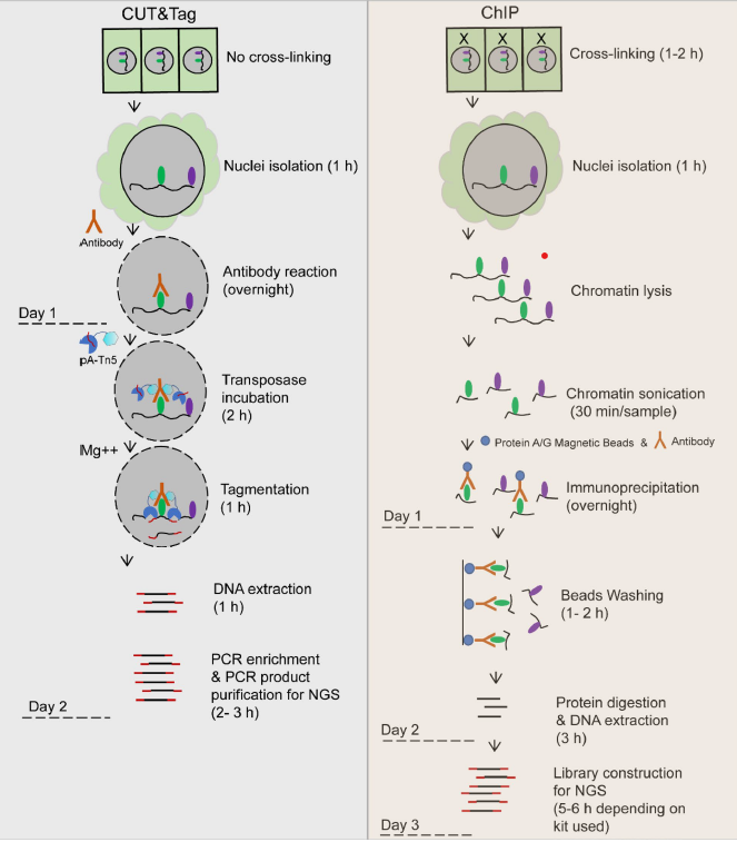 圖2 CUT&Tag與ChIP-Seq實(shí)驗流程對比[2]