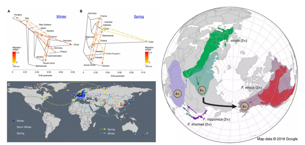 除了祖先來(lái)源的探索,物種的進(jìn)化與傳播歷程也是每一個(gè)種質(zhì)資源研究者的重點(diǎn)關(guān)注對象。
