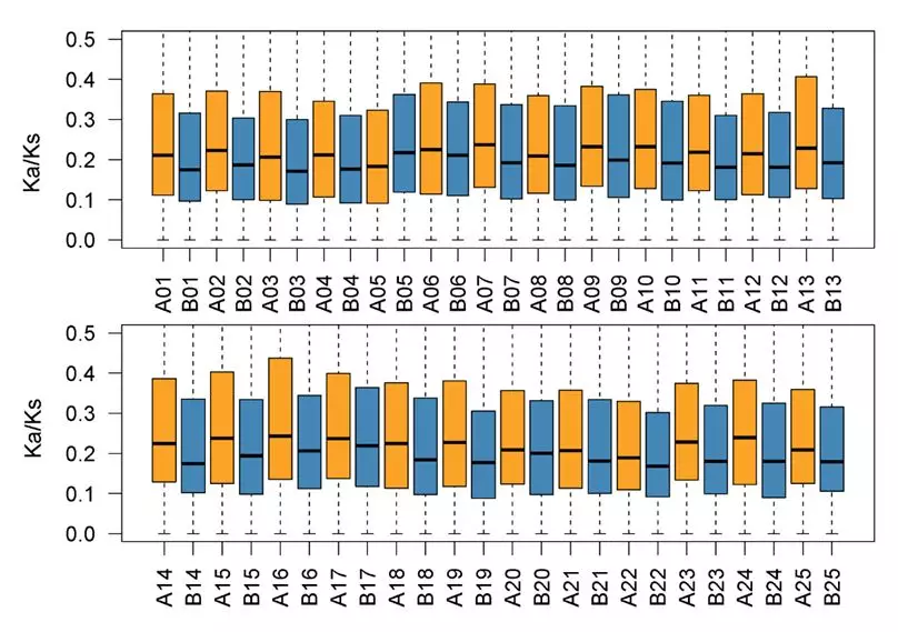 圖9 金魚(yú)A、B亞基因組Ka/Ks