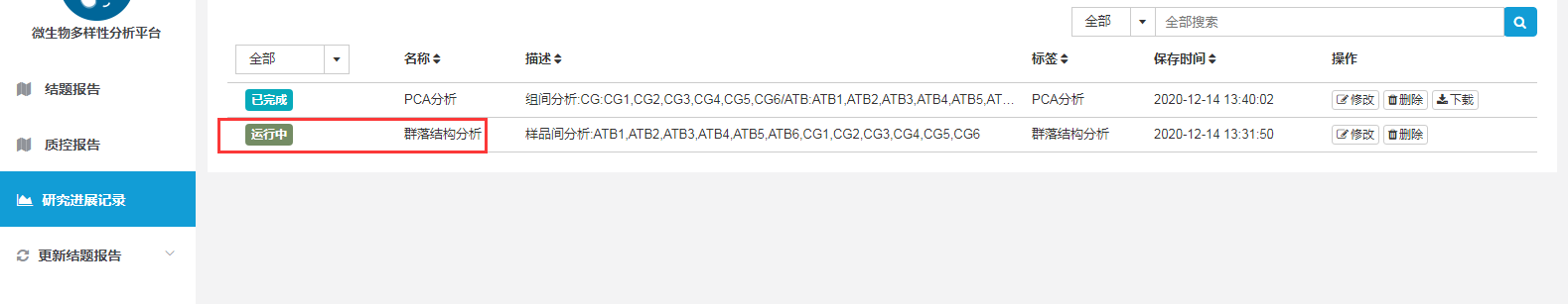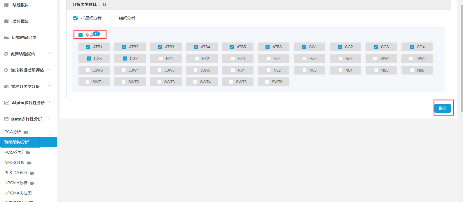 云平臺上關(guān)于群落結構分析的操作非常簡(jiǎn)單,打開(kāi)結題報告后點(diǎn)擊“Beat多樣性分析”中的群落結構分析,選中需要分析的樣品點(diǎn)擊提交,然后可以在分析記錄界面查看分析結果(由于會(huì )做999次重復計算,大家耐心等待哦)。